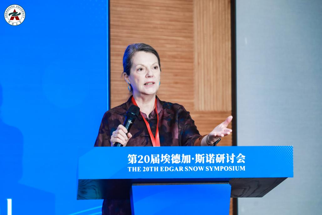 何理良则从历史的角度回顾了斯诺与中国革命的深厚渊源。她讲述了国务院原副总理黄华与斯诺夫妇交往的故事,认为他们的友谊见证了中美民间交往的历史延续。她指出,中国国际友人研究会与美国斯诺纪念基金会合作已逾40年,举办了19届研讨会,此次郑州大学承办的第20届会议为该传统注入了新的活力。她呼吁继续弘扬斯诺精神,共同推动世界和平与人类进步。