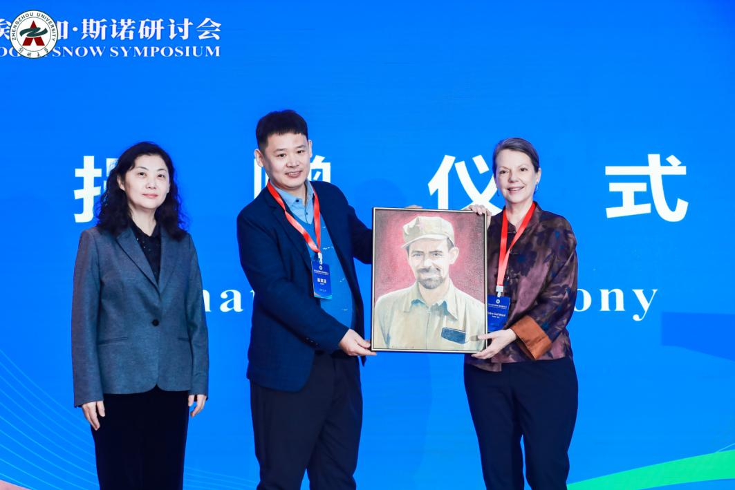 郑州大学美术学院教师代表向沃德女士赠送斯诺油画像。
