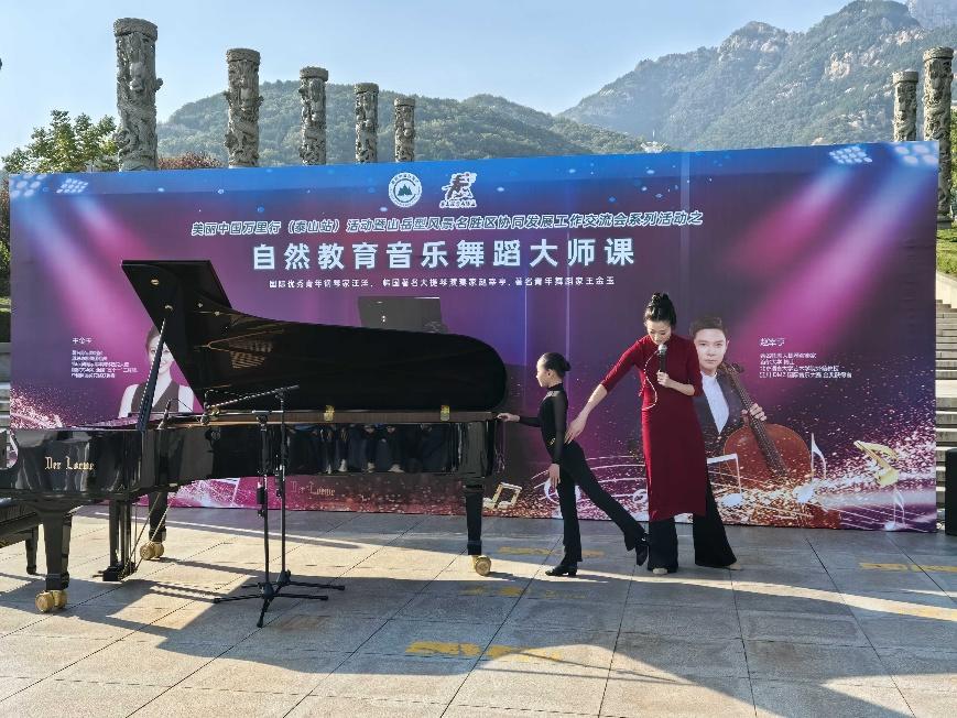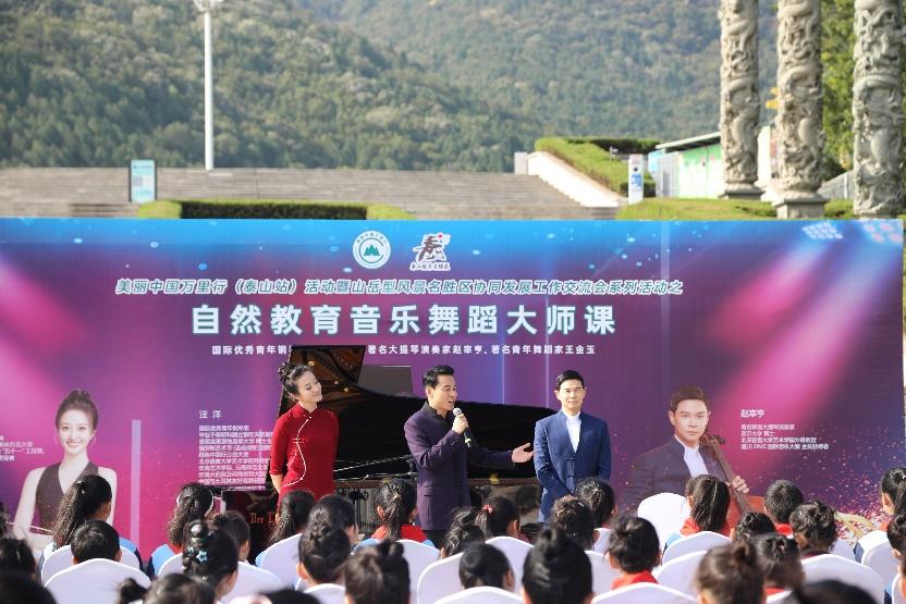 10月18日下午两点,由中国风景名胜区协会和泰安市泰山风景名胜区管理委员会联合主办的“美丽中国万里行”自然教育音乐舞蹈大师课在泰山景区天外村广场温情开讲。