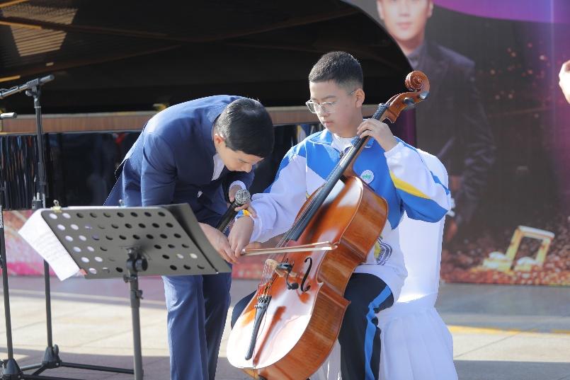 国际钢琴家、泰国宣素那他皇家大学艺术学院博士生导师、教授、俄罗斯艺术节(圣彼得堡)国际大赛金奖获得者汪洋,韩国大提琴演奏家、首尔大学博士、北京语言大学艺术学院外籍教授、涟川DMZ国际音乐大赛金奖获得者赵宰亨,著名青年舞蹈家、原总政歌舞团领舞、第65届国际青年奥林匹克大使、国家文华奖、全国“五个一工程”奖、中国舞蹈荷花奖获得者王金玉应邀参加。三位艺术家将自然教育理念与音乐舞蹈艺术巧妙结合,为现场150名中小学生开启了一堂别开生面的艺术课。
