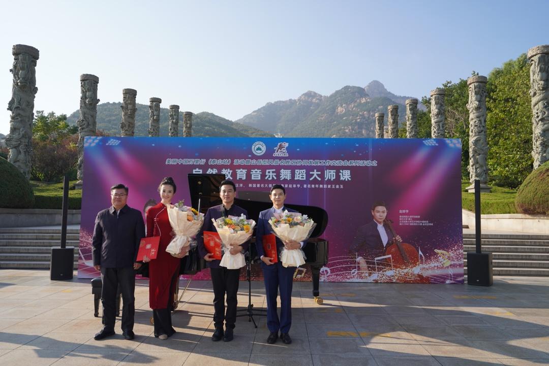 教学示范结束后,本次课程进入尾声。泰山风景名胜区党工委副书记陈传帅向三位艺术家颁发《泰安市中小学艺术指导证书》,以此为纽带,让泰安的孩子们在家门口便能触摸顶尖艺术的温度,于艺术启蒙的心田播下专业的种子,在自然与艺术的双重滋养下,让视野随艺术延展,素养伴热爱生长。